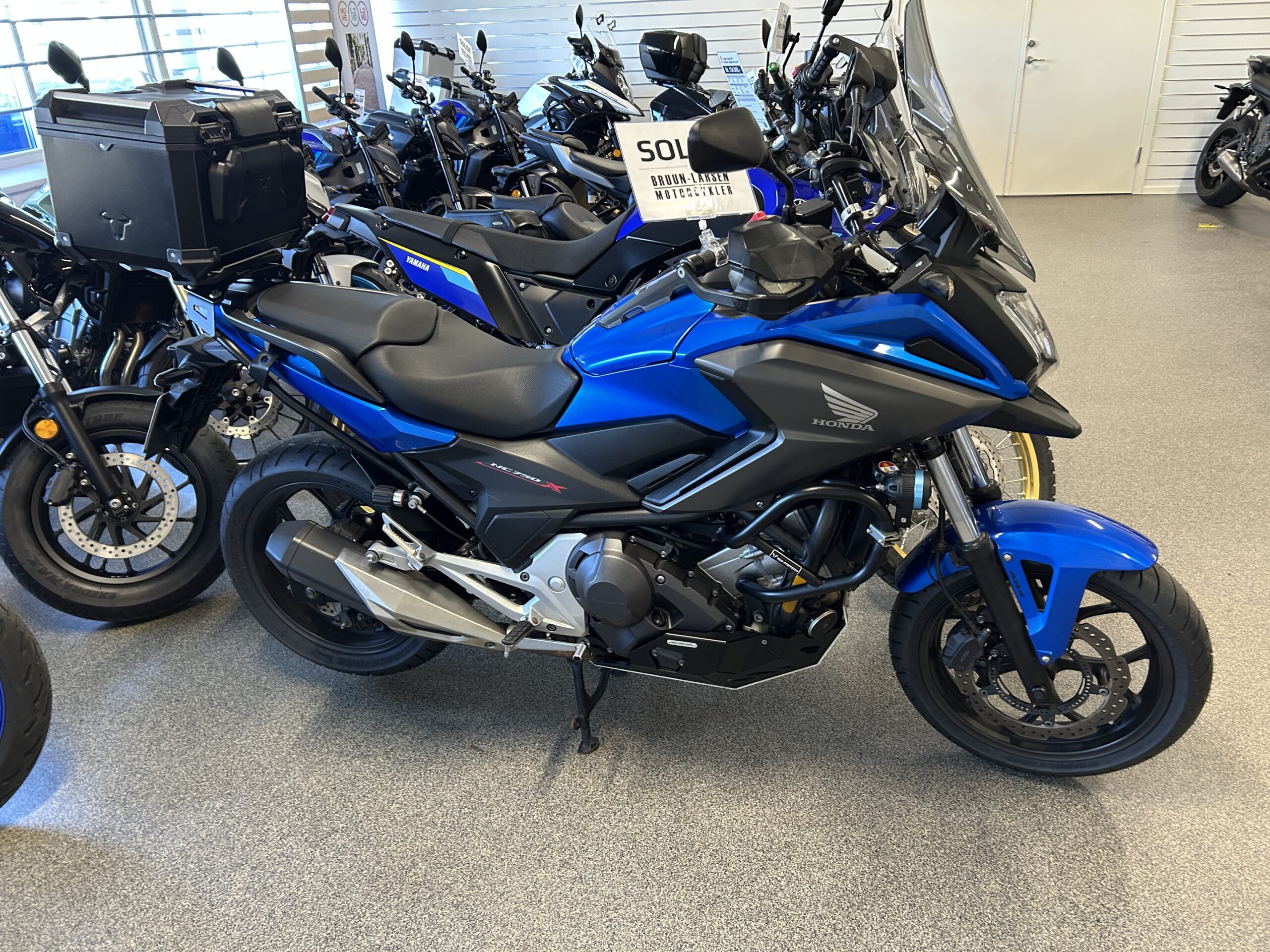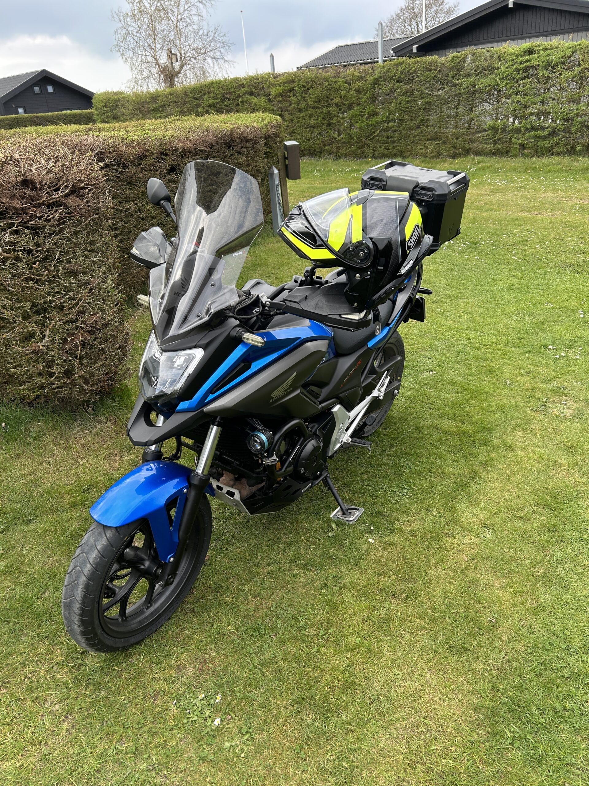 Den har gået 42000 km, men er i fin stand. En ny hjelm med intercom blev også en del af handlen.